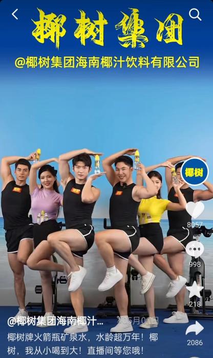 椰樹(shù)直播間內(nèi),主播們以經(jīng)典動(dòng)作宣傳椰樹(shù)產(chǎn)品。 截圖自椰樹(shù)直播間。