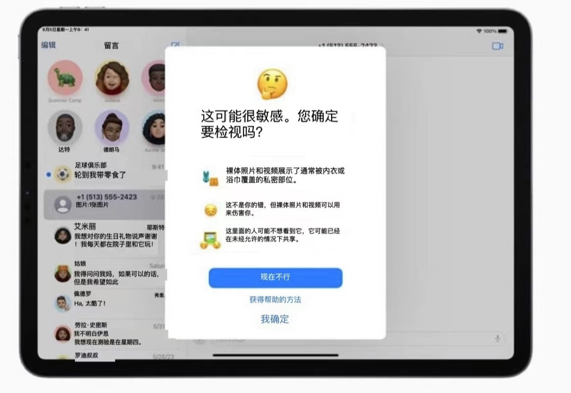 另外,值得注意的是,在近日蘋(píng)果發(fā)布的隱私更新中,蘋(píng)果對(duì)隔空投送等又進(jìn)一步更新。當(dāng)用戶收到不良信息會(huì)被提醒“這可能很敏感,你確定要檢視嗎?”