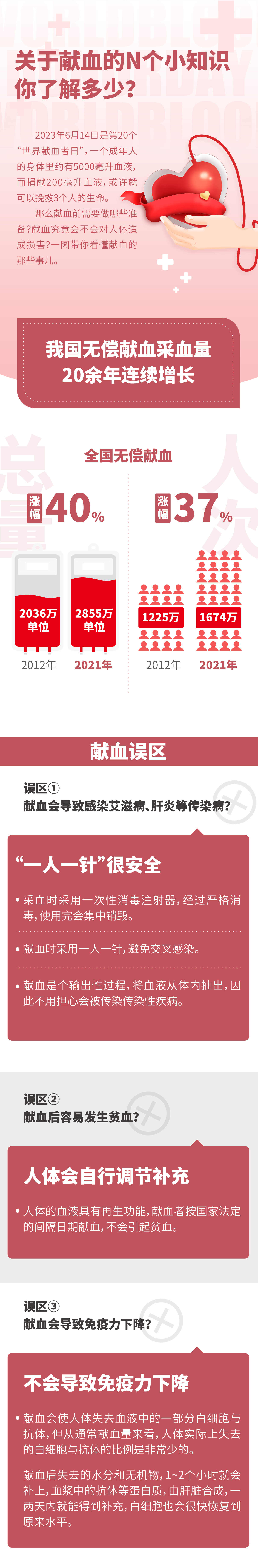 2023年6月14日是第20個“世界獻血者日”,一個成年人的身體里約有5000毫升血液,而捐獻200毫升血液,或許就可以挽救3個人的生命。那么獻血前需要做哪些準備?獻血究竟會不會對人體造成損害?戳圖帶你看懂獻血那些事兒↓↓↓