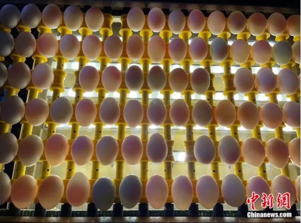 進(jìn)行人工光檢的鴨蛋。徐珊珊 攝