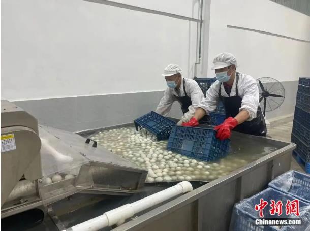 “公司現(xiàn)有鴨蛋加工生產(chǎn)線三、四條,單天產(chǎn)能達(dá)到20萬枚。此外還有15家農(nóng)戶和我們合作,以此來保證供應(yīng)量。”高郵鴨集團(tuán)生產(chǎn)管理部副部長陳菁說。