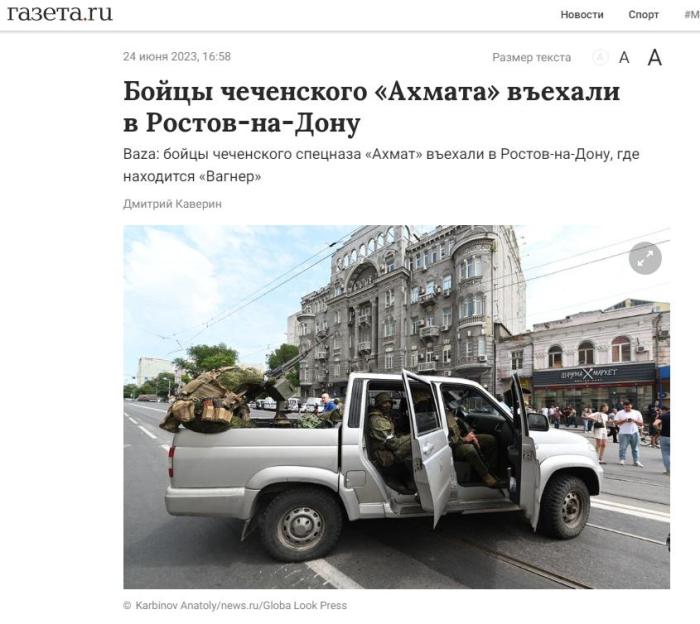 中新網(wǎng)6月24日電 據(jù)俄羅斯《報(bào)紙報(bào)》援引社交媒體消息,當(dāng)?shù)貢r(shí)間24日,俄羅斯車(chē)臣“阿赫馬特”特種部隊(duì)已進(jìn)入頓河畔羅斯托夫地區(qū)。當(dāng)日早間,俄雇傭兵組織“瓦格納”集團(tuán)進(jìn)入該地。