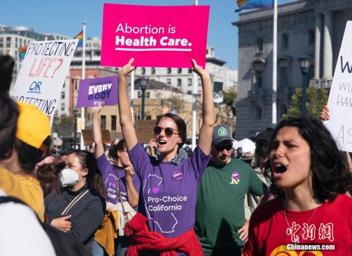 資料圖:當?shù)貢r間2022年6月24日,美國舊金山民眾聚集在市政廳前,抗議美聯(lián)邦最高法院推翻“羅訴韋德案”。中新社記者 劉關(guān)關(guān) 攝