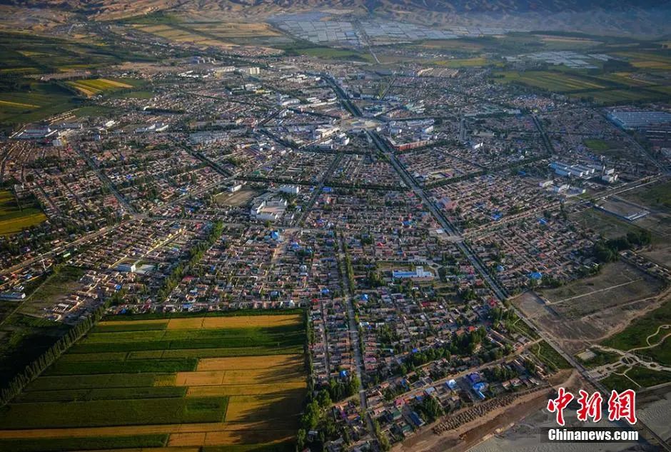從空中俯拍世界最大規(guī)模的八卦城。據(jù)介紹,特克斯縣根據(jù)《周易》八卦“后天圖”方位設計建成,路路相通,街街相連,有著神奇迷宮般的街道布局,是現(xiàn)今世界上唯一一座保存良好、卦爻完整、規(guī)模最大的八卦城。劉新 攝