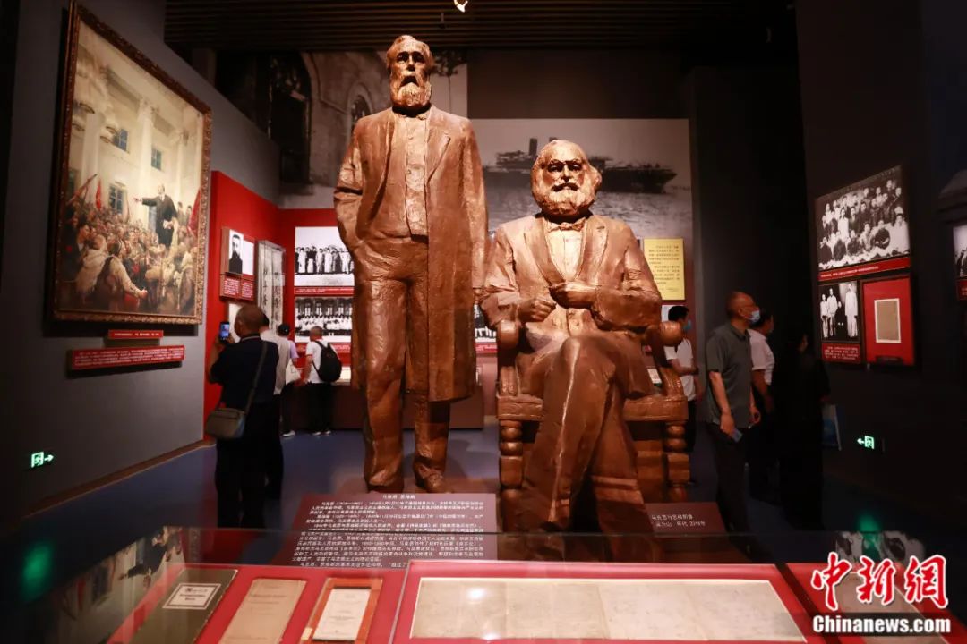 中國共產(chǎn)黨歷史展覽館內(nèi)的馬克思、恩格斯雕塑。陳曉根 攝