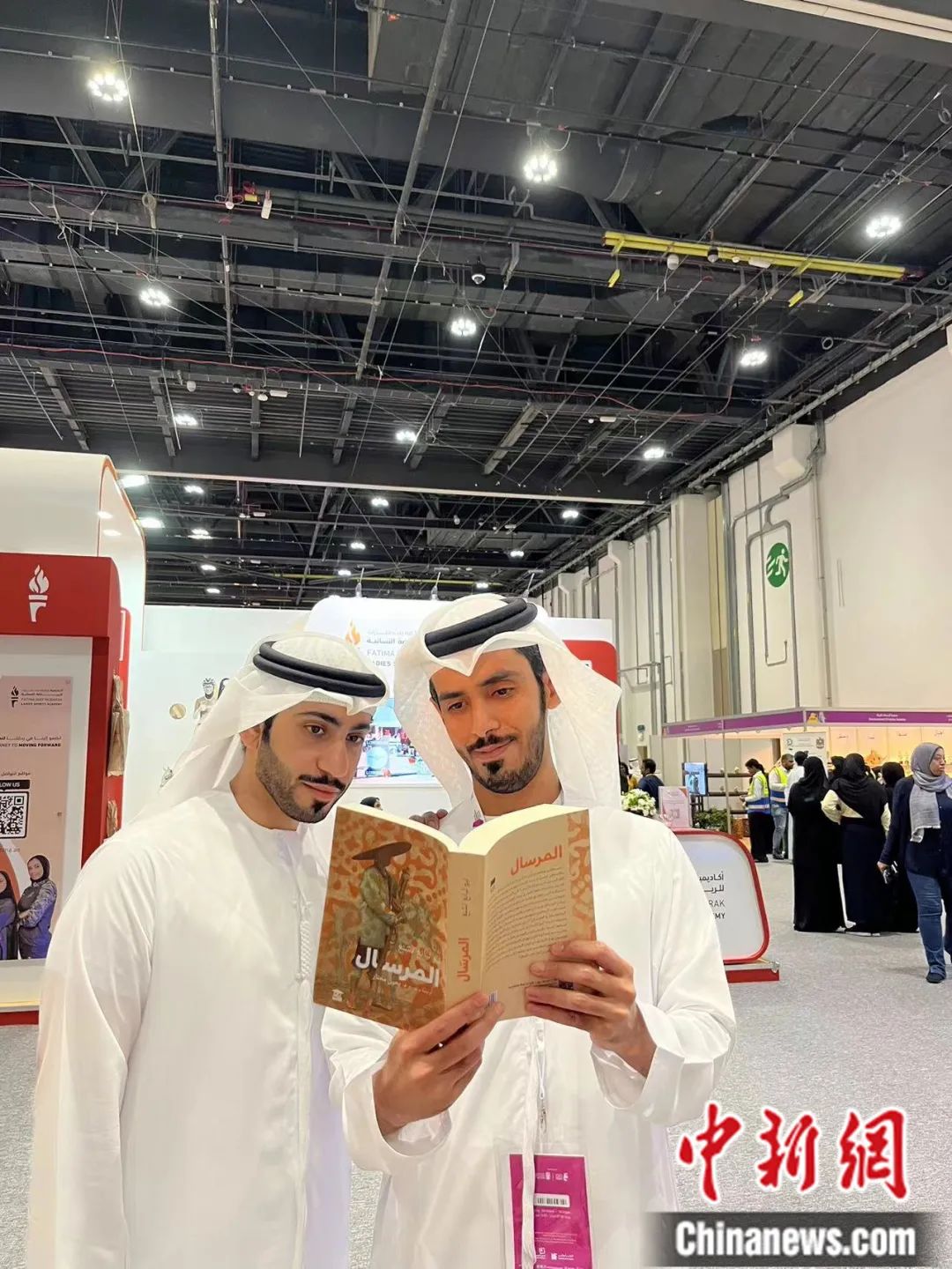 在阿布扎比國(guó)際書(shū)展上,阿拉伯文學(xué)愛(ài)好者閱讀中國(guó)文學(xué)作品《捎話》。譯林出版社 供圖