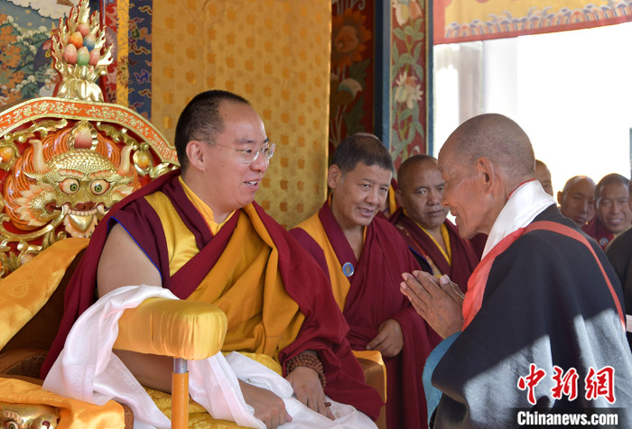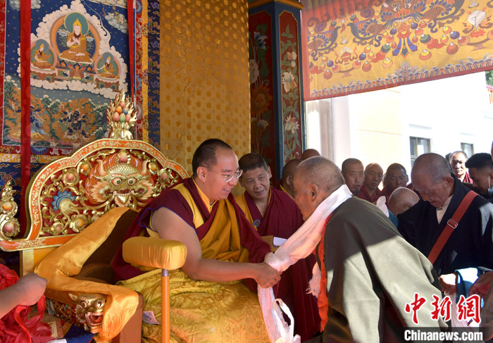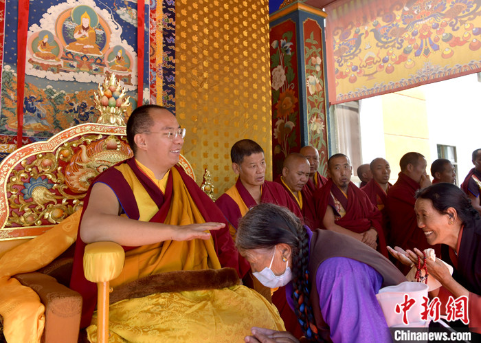 7月17日,班禪在雪林多吉頗章接受信眾朝拜。 中新社記者 李林 攝