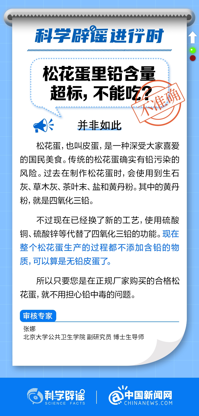 過去在制作松花蛋時,會使用到生石灰、草木灰、茶葉末、鹽和黃丹粉。其中的黃丹粉,就是四氧化三鉛。不過現(xiàn)在已經(jīng)換了新的工藝,使用硫酸銅、硫酸鋅等代替了四氧化三鉛的功能?,F(xiàn)在整個松花蛋生產(chǎn)的過程都不添加含鉛的物質(zhì),可以算是無鉛皮蛋了。(來源:科學辟謠、中國新聞網(wǎng)微博)