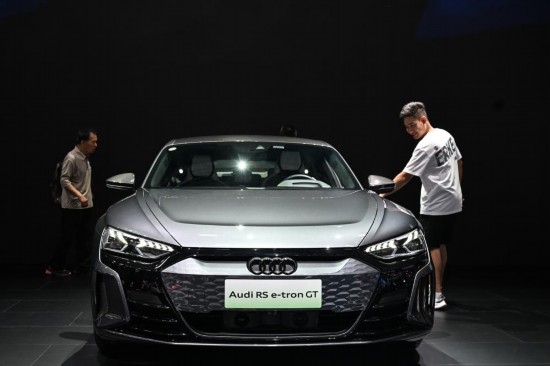 觀眾在長春汽博會(huì)上的一汽-大眾奧迪展位參觀(7月20日攝)。(新華社記者顏麟蘊(yùn)攝)