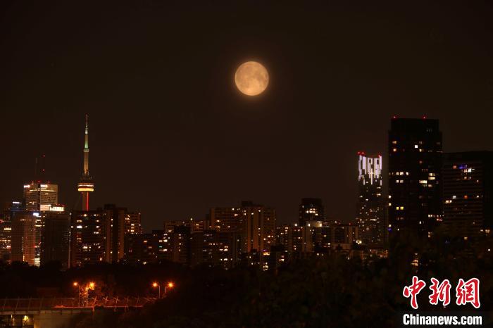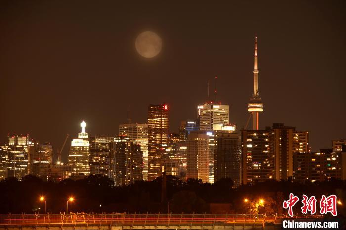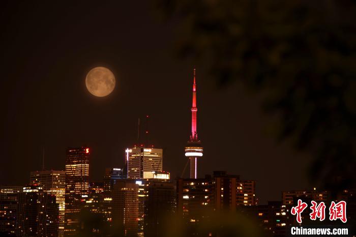 當(dāng)?shù)貢r(shí)間8月2日凌晨,夜色薄云下的加拿大多倫多迎來2023年的首次“超級(jí)月亮”,也就是近地點(diǎn)的滿月。(雙重曝光) 中新網(wǎng)記者 余瑞冬 攝