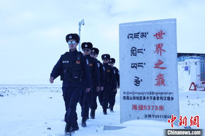 圖為袁浩杰與戰(zhàn)友在海拔5373米的普瑪江塘邊境派出所巡邏。山南邊境管理支隊(duì)供圖
