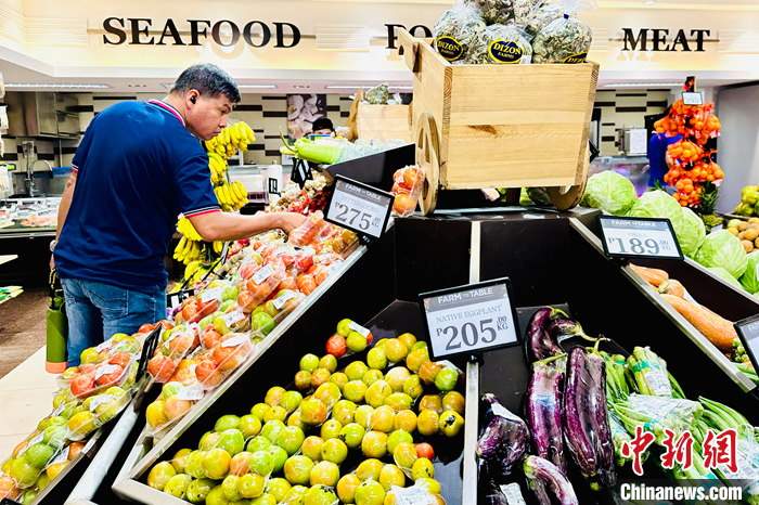 當(dāng)?shù)貢r(shí)間8月4日,菲律賓大馬尼拉地區(qū)馬卡蒂市,市民在超市選購(gòu)水果。 中新社記者 張興龍 攝