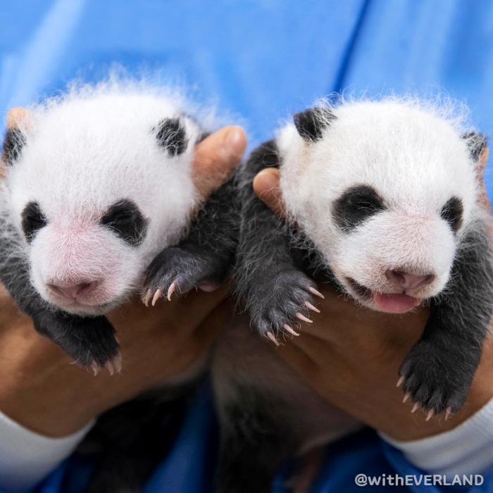 大熊貓“愛寶”“樂寶”于2月成功交配,懷胎約5個(gè)月后順利生產(chǎn)。當(dāng)?shù)貢r(shí)間7月7日清晨,“愛寶”產(chǎn)下一對雌性雙胞胎幼崽。這是2023年在海外出生的首對大熊貓幼崽,也是在韓國誕生的首對大熊貓雙胞胎。