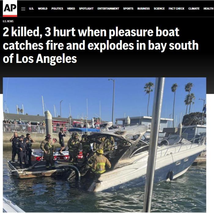 中新網(wǎng)8月7日電 據(jù)美聯(lián)社報道,美國加州長灘(Long Beach)發(fā)生一起游艇起火事故,造成2人死亡、3人受傷。