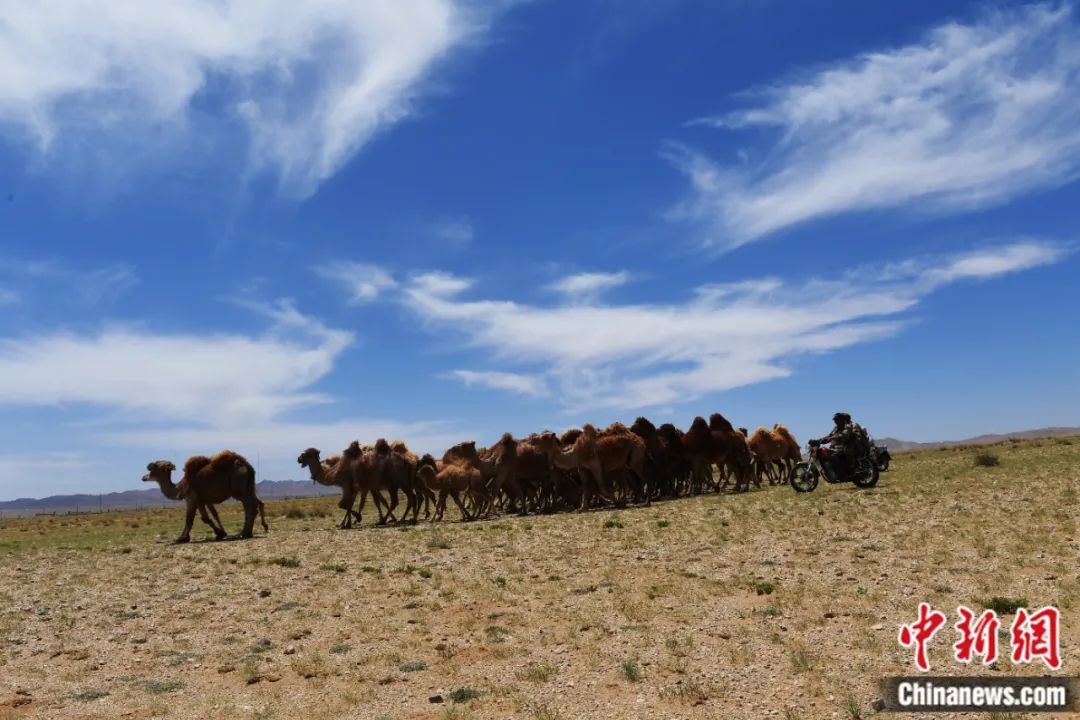 圖為烏拉特草原上的駝隊。胡東育 攝