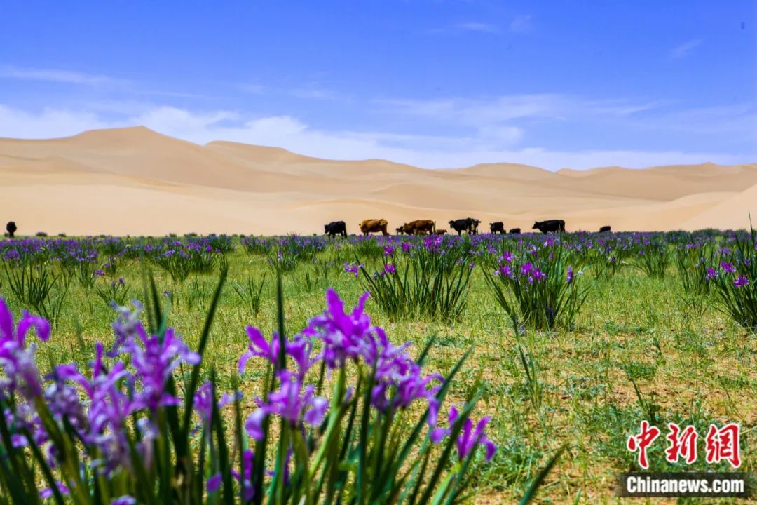 圖為烏蘭布和沙漠中的奶牛。胡東育 攝