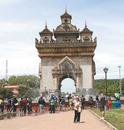 老撾首都萬(wàn)象市中心的凱旋門(mén)吸引眾多游客參觀。