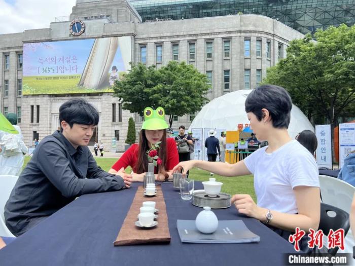 茶和天下活動在首爾市市廳廣場舉行飲茶體驗(yàn)。劉旭 攝
