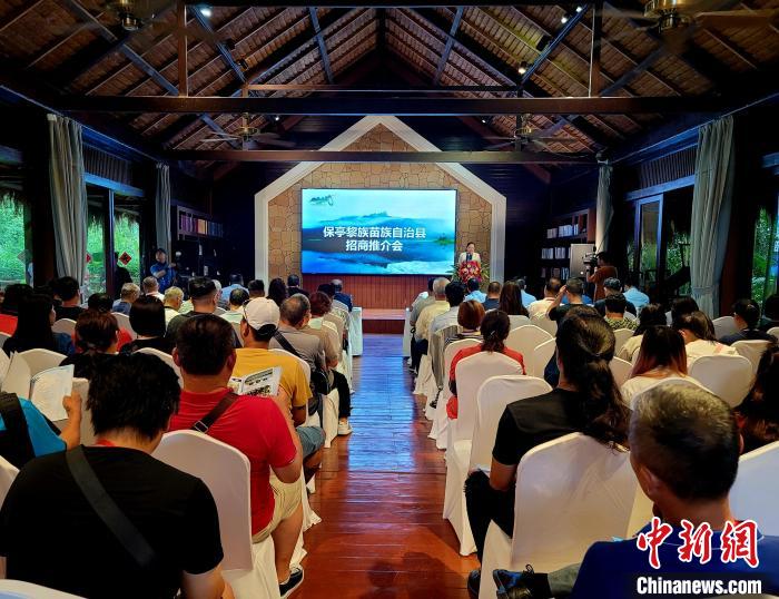 保亭縣向來訪臺灣同胞介紹當?shù)亻_發(fā)投資項目?!⊥鯐员?攝