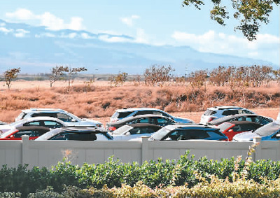 8月24日,美國夏威夷毛伊島卡胡盧伊機(jī)場(chǎng)外的一片空地上停放著租車公司沒有租出去的汽車。