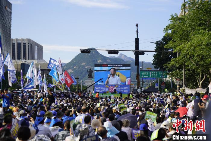 9月2日下午,韓國在野黨與市民團體在首爾市中心再次舉行大規(guī)模集會,強烈要求日本政府停止福島核污染水排海行為。圖為集會現(xiàn)場。 中新社記者 劉旭 攝