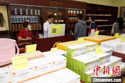 當(dāng)?shù)貢r(shí)間9月1日,加拿大多倫多,北京同仁堂位于大多倫多地區(qū)的第四家分店在安大略省列治文山(Richmond Hill)市開業(yè)。圖為當(dāng)?shù)仡櫩驮谠撻T店詢購中藥?!≈行律缬浾?余瑞冬 攝