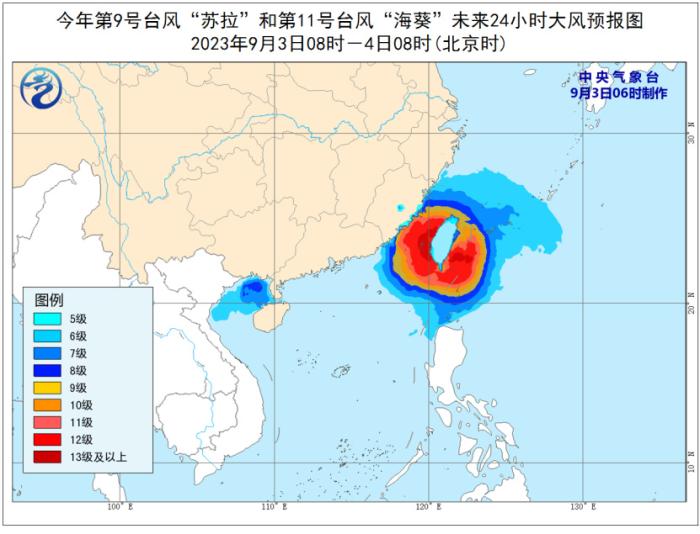 臺風(fēng)“海葵”未來24小時大風(fēng)預(yù)報圖(9月3日08時至4日08時)