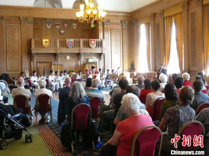 2008年9月25日,上海城隍廟道教樂團(tuán)在英國利茲市政廳演出現(xiàn)場?!?上海市道教協(xié)會供圖)