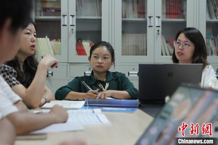 9月7日,在成都紡織高等??茖W校,“輪椅女孩”張曉麗(右二)與其無障礙服裝團隊探討。王利文 攝