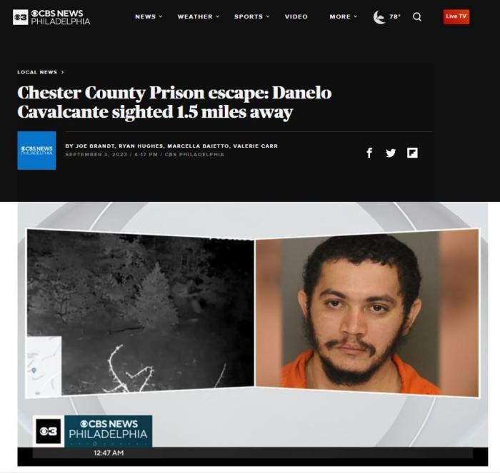 據(jù)報道,當(dāng)?shù)貢r間8月31日上午8時45分左右,卡瓦爾坎特從賓夕法尼亞州切斯特縣監(jiān)獄越獄,該地距離費城約有1小時車程。自其越獄后,已多次被監(jiān)控拍到,也有目擊者見到過他。