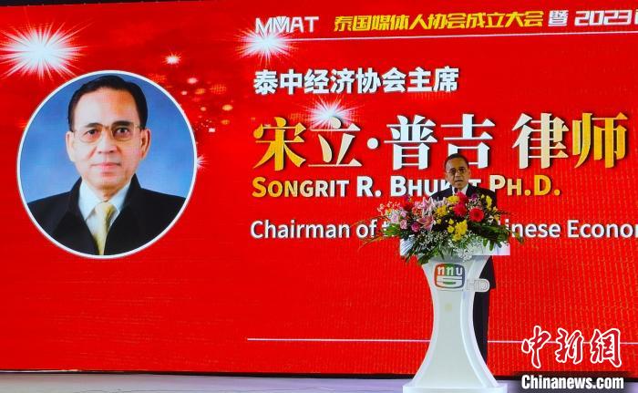 9月9日下午,泰中經濟協(xié)會主席宋立·普吉在泰國媒體人協(xié)會成立大會上致辭?! ±钣趁?攝
