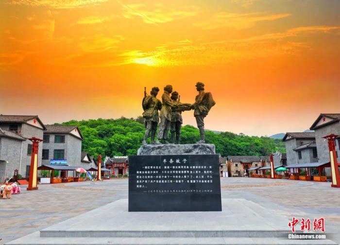 汝城縣沙洲村民俗廣場(chǎng)“半條被子”雕塑。郴州市委宣傳部供圖