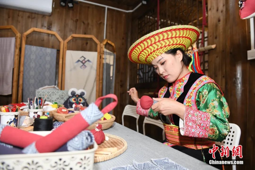 花瑤姑娘制作手工藝品。楊華峰 攝