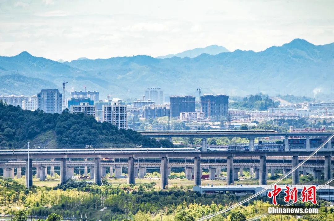 兩列高速鐵路與國際陸港的貨運班列在這里交匯。潘雨 攝