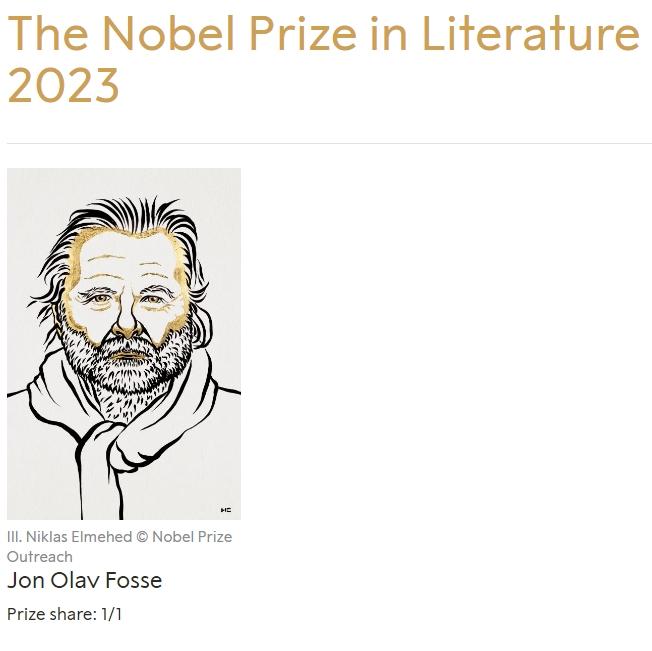 中新網(wǎng)10月5日電(張奧林)據(jù)諾貝爾獎官網(wǎng)消息,北京時(shí)間5日19時(shí)許,2023年諾貝爾文學(xué)獎揭曉,挪威作家約恩·福瑟(Jon Fosse)被授予該獎項(xiàng)。