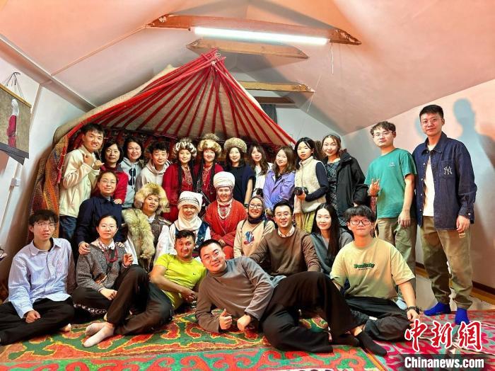 北師大未來(lái)設(shè)計(jì)學(xué)院師生在吉爾吉斯斯坦民族服飾設(shè)計(jì)工作室體驗(yàn)當(dāng)?shù)貍鹘y(tǒng)服飾。北師大未來(lái)設(shè)計(jì)學(xué)院供圖