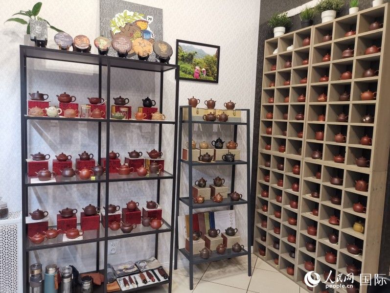 馬克西姆的茶葉店擺放著來自中國宜興、景德鎮(zhèn)等地方的茶壺。 人民網(wǎng)記者 楊倩攝