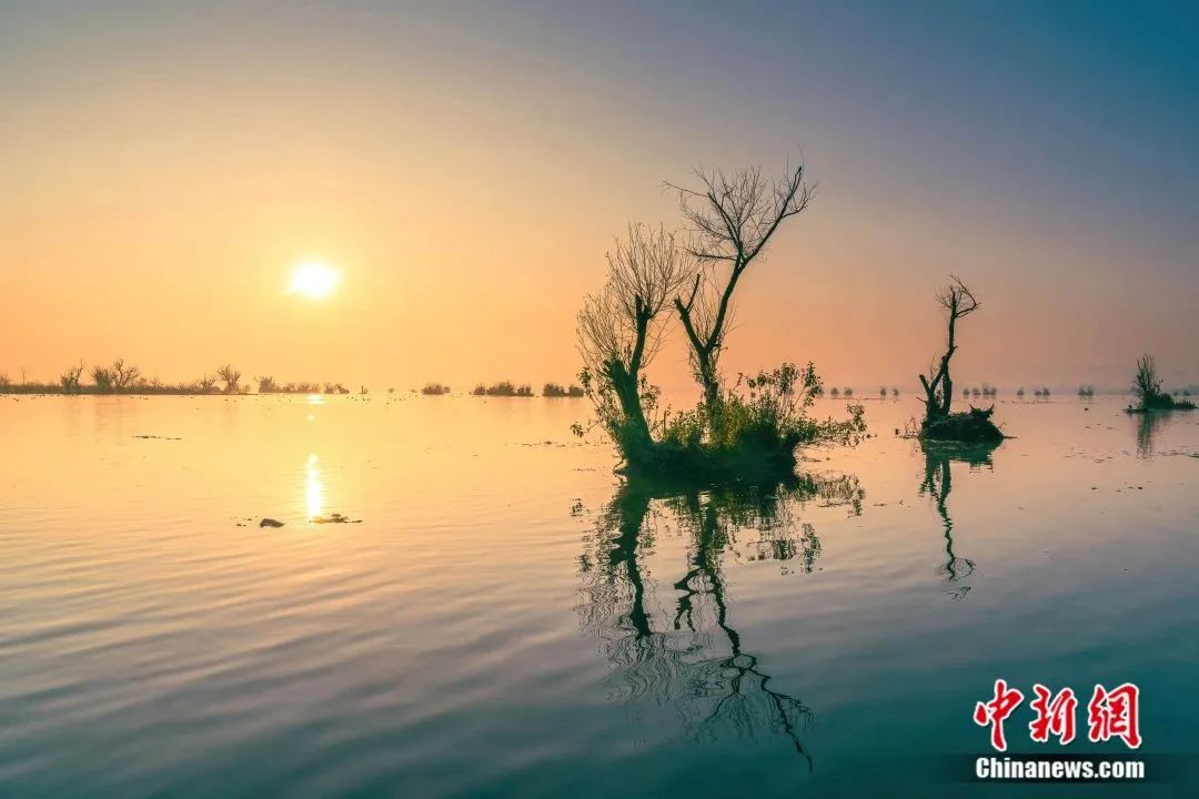 高原陽(yáng)光與飛翔的水鳥