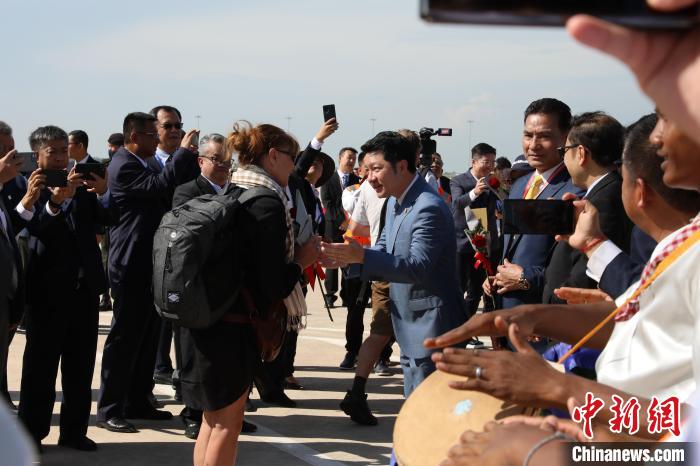 翁賽維索當天和柬埔寨旅游部、柬民航國務秘書處官員以及當?shù)芈糜涡袠I(yè)代表一同迎接首架進港客機。他表示,暹粒吳哥國際機場將成為連接國際航空線路的紐帶,為柬埔寨帶來更多的國際旅客和投資者,進一步推動柬埔寨經(jīng)濟社會發(fā)展。