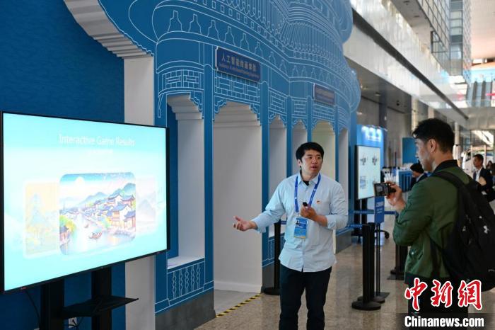 在人工智能繪畫和動畫體驗區(qū),體驗者只需在現場觸控屏前隨意勾畫線條輪廓,智能引擎將據此生成意境超拔的山水畫卷,讓觀眾體驗前沿科技與傳統(tǒng)繪畫交融之趣。體驗區(qū)內的智能引擎還可建構虛擬人物,生成動畫短片暢游打卡勝地,讓體驗者置身于古都風貌和現代生活。