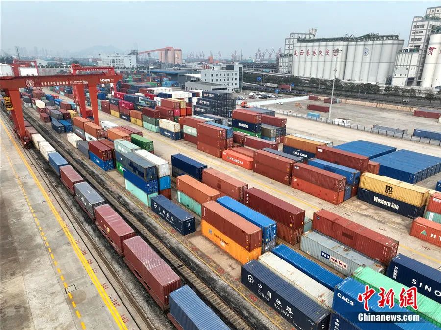 2023年10月9日,大型機(jī)械在中哈(連云港)物流合作基地往中歐班列裝載集裝箱。王春 攝