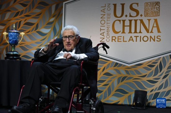 新華社紐約10月25日電(記者施春 楊士龍)美中關(guān)系全國委員會24日在紐約舉行年度頒獎晚宴,兩國領(lǐng)導(dǎo)人向晚宴致賀信。晚宴向美國前國務(wù)卿基辛格頒獎,表彰他為中美關(guān)系發(fā)展所作的卓越貢獻(xiàn)。