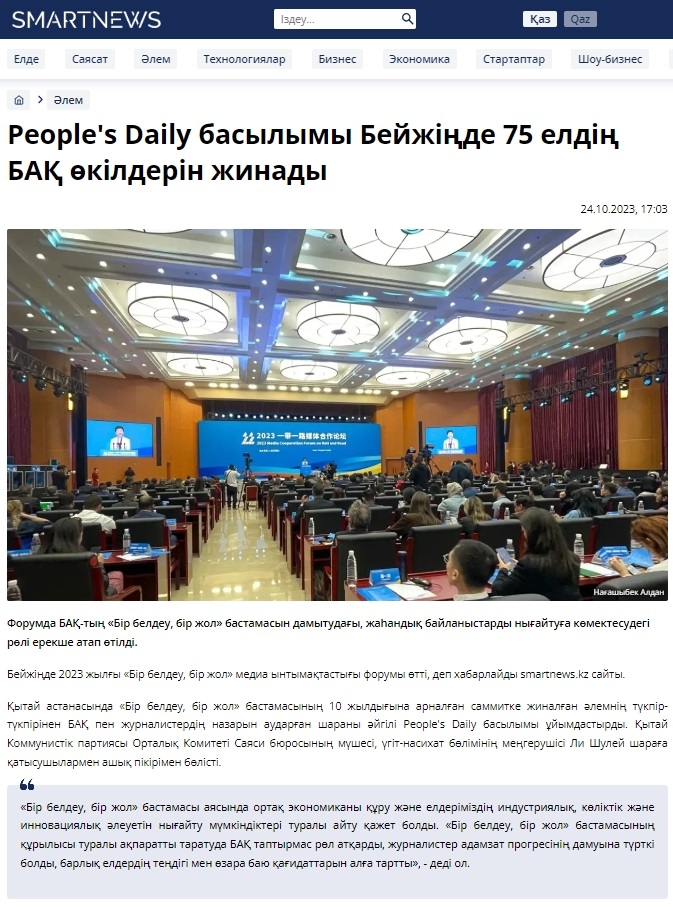 哈薩克斯坦Smartnews網(wǎng)站報道2023“一帶一路”媒體合作論壇