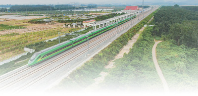 10月22日,動車從中老鐵路橄欖壩站駛出(無人機照片)。