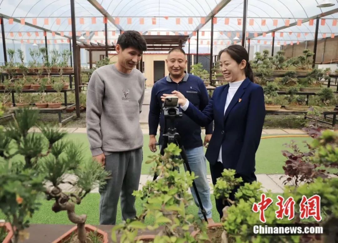 李敏指導村民直播銷售盆景。丁華明 攝