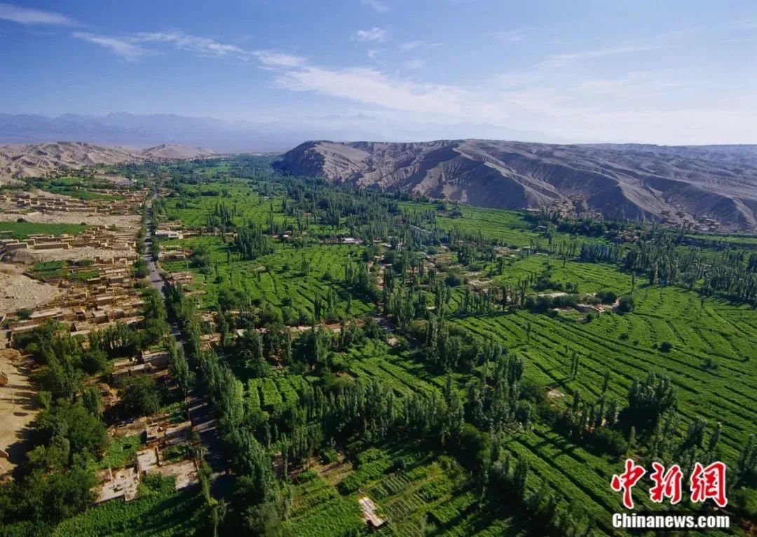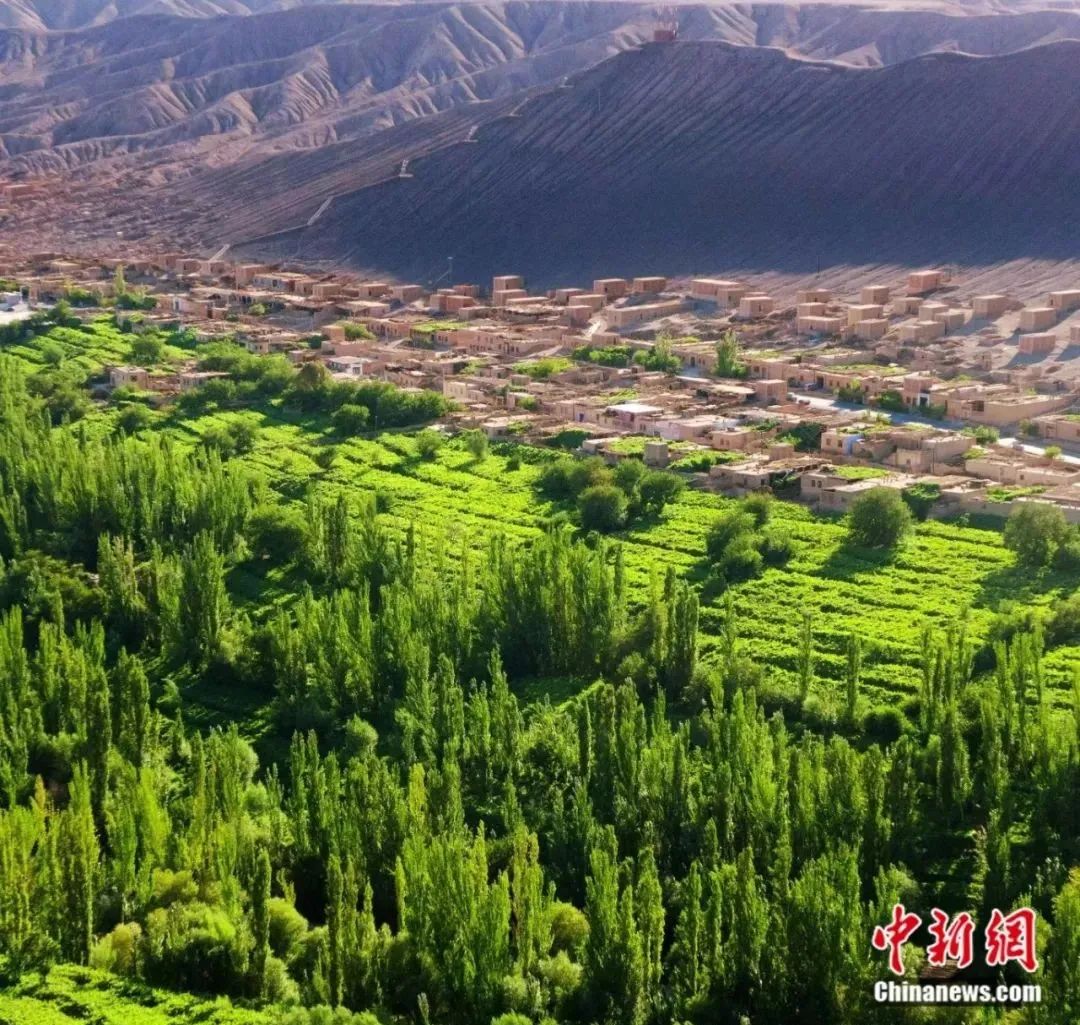 火焰山西側(cè)的峽谷中有一片綠洲