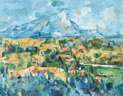 由此,塞尚、梵高、高更等藝術(shù)家的繪畫語言逐漸展現(xiàn)出不同于印象派的風(fēng)格。塞尚在繪畫中拋棄了明暗和透視,尋求色彩與形狀的互相牽制,使畫面結(jié)構(gòu)更加穩(wěn)定嚴(yán)謹(jǐn),制造出物與物之間的空間張力。他的油畫作品《圣維克多山》(見圖,曲音供圖)用冷暖色搭配勾勒出許多幾何形狀的色塊,形如房屋、狀似樹木,以相互交疊的視覺呈現(xiàn)替代了透視效果,暗示出遠(yuǎn)近和前后關(guān)系,令畫面中的山峰無論從哪個角度觀看都顯得雄偉壯麗。