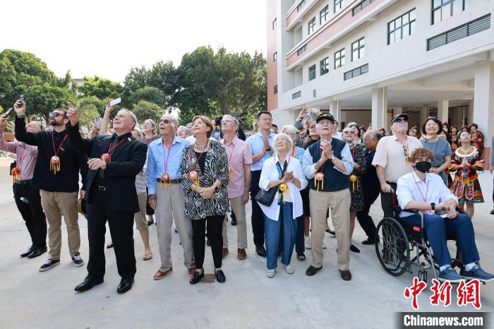 11月5日,美中航空遺產(chǎn)基金會主席杰弗里·格林和飛虎隊老兵哈里·莫耶、梅爾文·麥克馬倫攜飛虎隊后代,走進“飛虎隊友誼學校”——廣西柳州市壺西實驗中學。