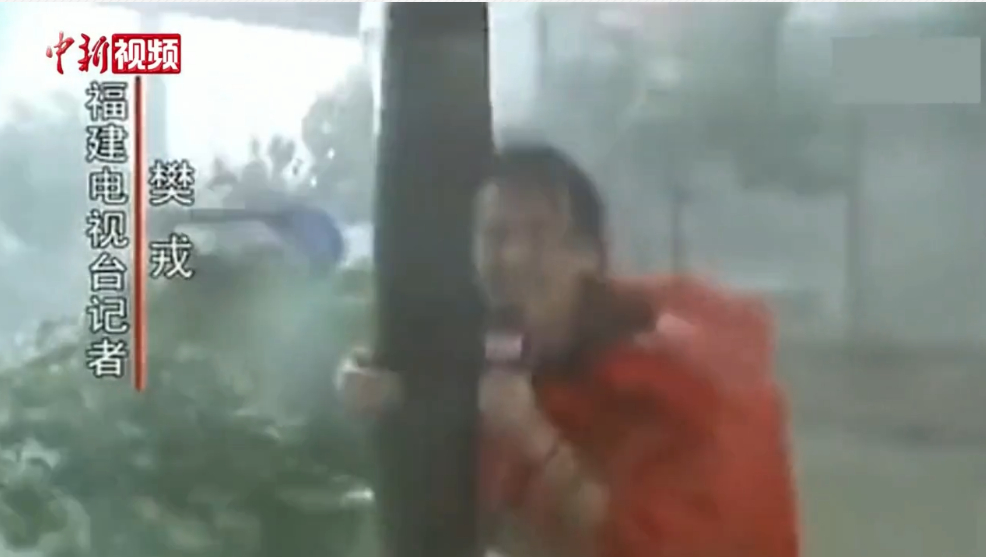 臺風(fēng)暴雨來襲,他們身體力行,播報(bào)臺風(fēng)的威力。