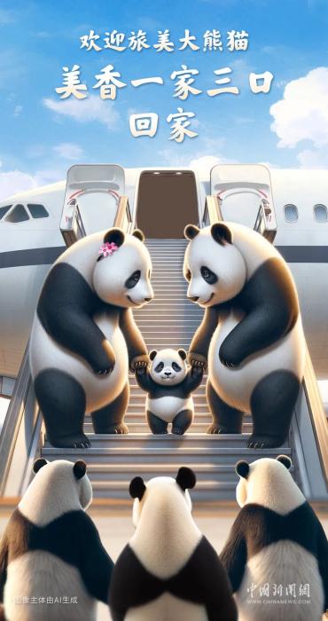 11月9日,中國(guó)外交部發(fā)言人汪文斌主持例行記者會(huì)時(shí)表示,根據(jù)中美雙方合作協(xié)議,“美香”一家如期回國(guó)?!拔覀儦g迎‘美香’一家。大熊貓是深受世界人民喜愛的珍稀瀕危野生動(dòng)物,也是中外文化交流的‘友誼使者’。”